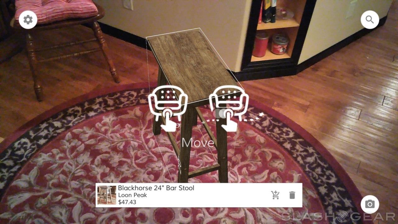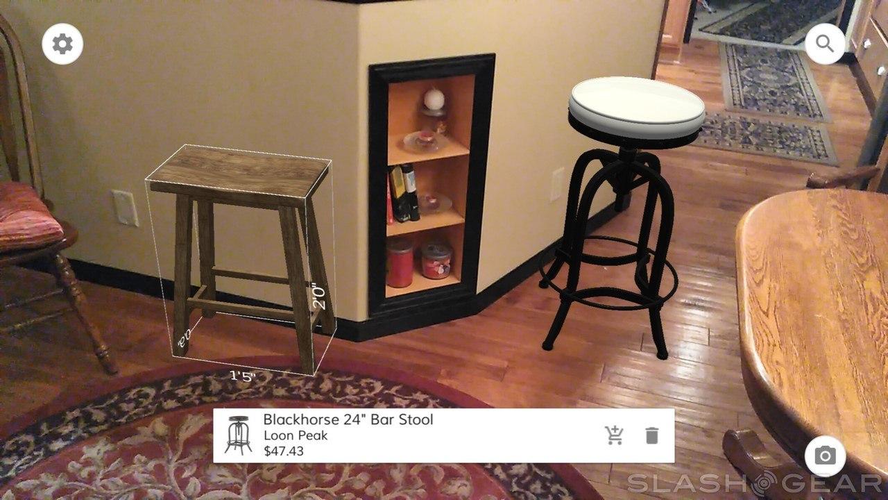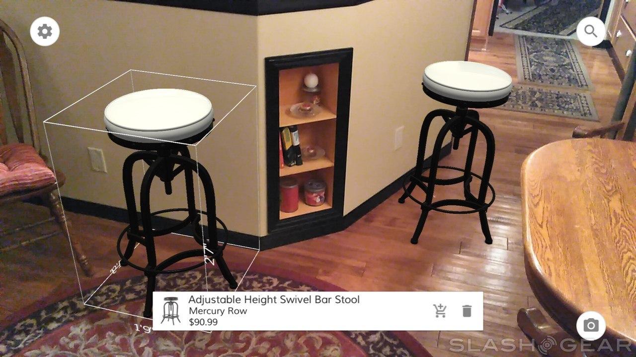 I'm not a fan of furniture shopping in general, but I found myself playing around with WayfairView nonetheless. You can browser Wayfair's sizable catalog or narrow down your search to a specific type of item – barstools, for example. Then you simply select an item from the search results and it's unpacked right in front of you. From there, you can reposition it to find the perfect placement, take a picture to send to other people involved in making furniture decisions, or add the item to your cart if you know it's something you must have.