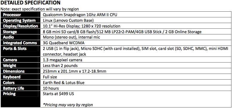 Lenovo Skylight Smartbook Official: AT&T 3G, 1GHz Snapdragon & 10hrs Battery