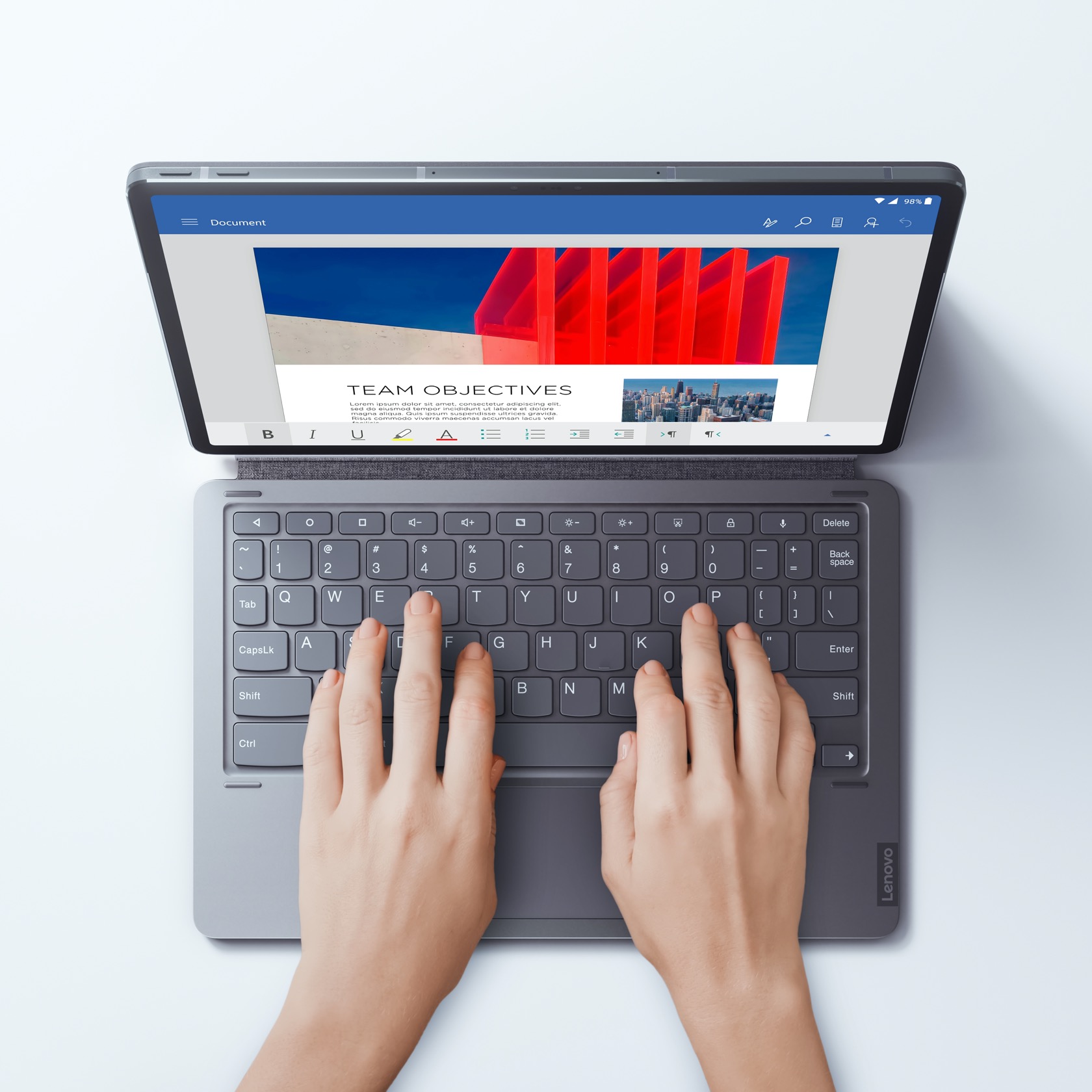 Inside the 485 gram all-aluminum casing is Qualcomm's Snapdragon 730G chipset. That's paired with up to 6GB of memory and up to 128GB of UFS storage. Sadly there's no integrated 5G, though – unlike the embedded 5G option Samsung offers for the Galaxy Tab S7+, and which Apple is expected to add to the iPad Pro sooner rather than later – which Lenovo says would have made its tablet too expensive.