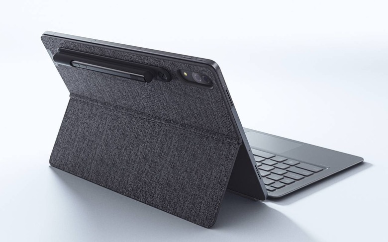 Still, you get face unlock using the tablet's front cameras, and the option of background blurring for video calls. There's a fingerprint reader on the side, and a microSD slot for expanding the storage by up to 1TB. Dual microphones, WiFI 802.11ac, and Bluetooth 5.0 are standard, and there'll be embedded LTE as an option.