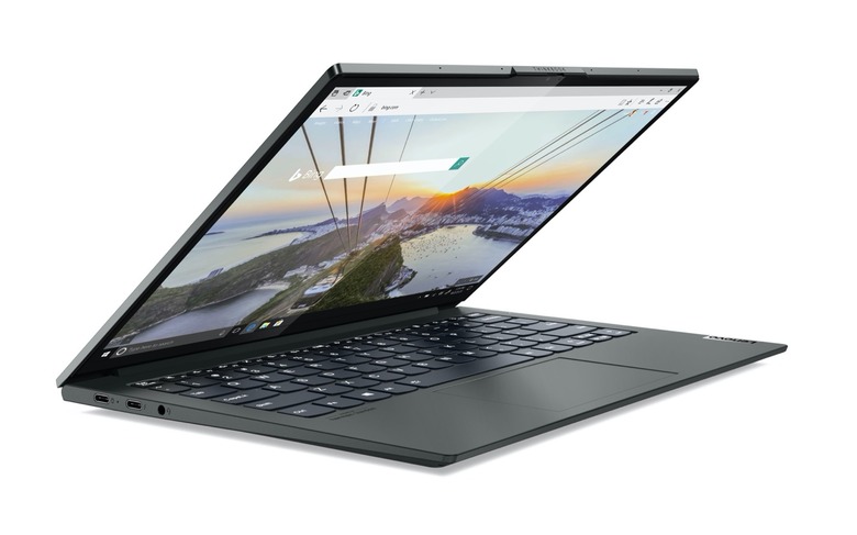 Open it up, and there's a 13.3-inch IPS main display. That has 400 nits of brightness, is a touchscreen, and supports Dolby Vision. Lenovo is using 11th Gen Intel Core processors – up to a Core i7 can be configured – with 16GB of LPDDR4x dual-channel memory, Intel UHD graphics, and up to 1TB of M.2 PCIe Gen4 SSD storage.