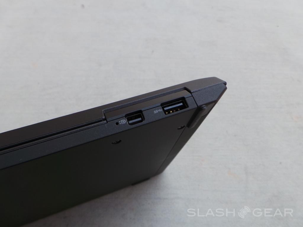 As for ports, buttons and such, it's loaded. While docked we have two USB 3.0 ports on the bottom back (which can power my 1TB external hard drive thankfully) display port, and the charging slot. When not docked and being used as a tablet we have a SIM slot for 3G connectivity, display port, charger, and a single USB port. As far as actual buttons the volume up/down and power button on the tablet are some of the most difficult to hit and interact with we've ever used. They're awful. Indented, tight, and tough to hit.