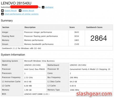 With that full-spec processor, we had relatively high hopes for the T400s' Geekbench performance. Our test machine has the 2.53GHz CPU with 2GB of RAM; despite that, it racked up an overall Geekbench score of 2864. That's worryingly just 20 points more than the last-gen 2.40GHz MacBook Pro from November last year, and almost 1,000 behind the more recent 2.53GHz P8700 MacBook Pro (albeit with 4GB of RAM). Interestingly, the ThinkPad's Geekbench Integer score actually nudges ahead of the Apple machine, but is let down by its Floating Point score.