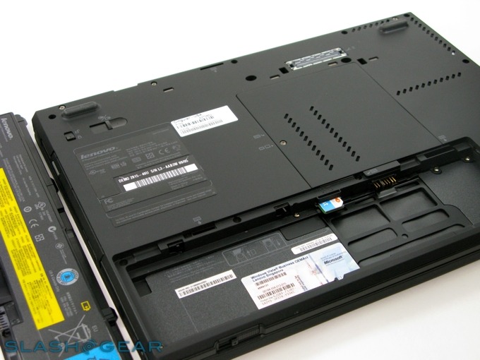 There's no mistaking the T400s for a CULV notebook when you look at the spec sheet. Lenovo offer a choice of standard-voltage Intel Core 2 Duo processors, either the 2.4GHz SP9400 or the 2.53GHz SP9600chips, plus either up to 256GB of SSD or 250GB of HDD storage and up to 4GB of DDR3 RAM. There's also an integrated optical drive, a 9.5mm slim line DVD burner or Blu-ray player, plus a 34mm ExpressCard slot or 5-in-1 multimedia card reader. Graphics are courtesy of Intel's GMA 4500MHD chipset, with no higher-spec options. Lenovo also fit WiFi as standard, and offer optional Bluetooth, WWAN (either AT&T HSPA or Verizon EVDO Rev.A, using Ericsson or Qualcomm chipsets respectively), WiMAX or ultrawideband connectivity. That's a decent list, but we wish Lenovo had used Qualcomm's Gobi chipset, which would've supported not only HSPA and EVDO in the same modem, but GPS as well.