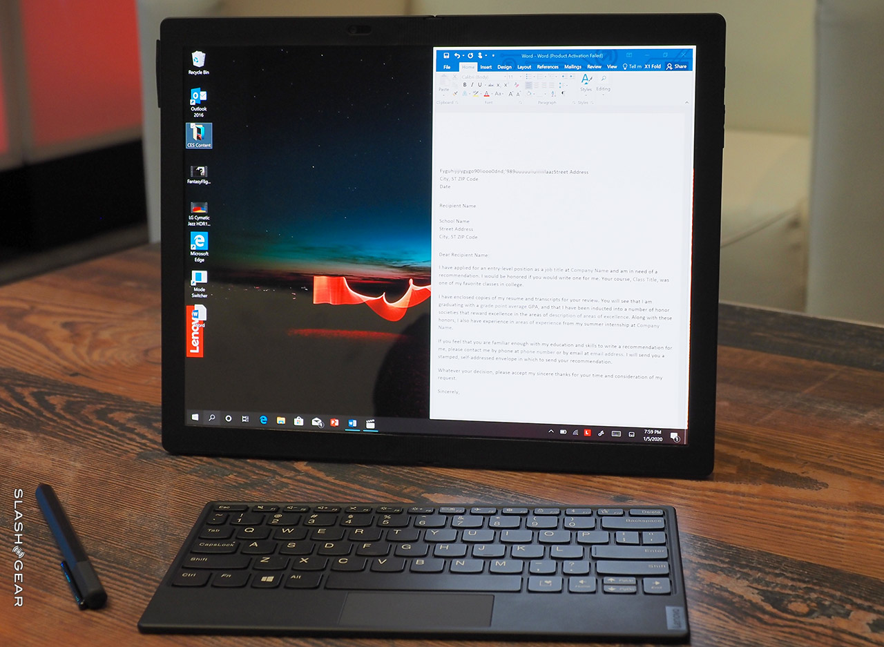The ThinkPad X1 Fold with Windows 10 will be available around this summer with prices starting at $2,499 USD; the optional stand will be available in the second half of this year for $24 USD. The Windows 10X version of the Fold will be available later on, but exact availability remains unclear.