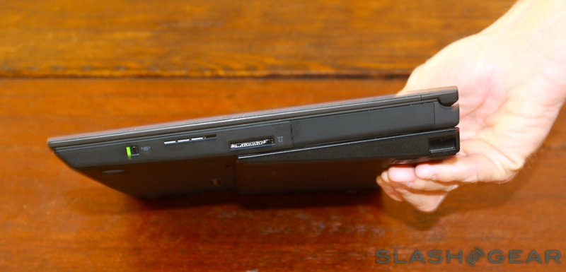 The X1 ships with two batteries from the factory, the internal chassis battery and an external Slice battery that could be described as a long, thin door-stop. The Slice battery snaps on the bottom back edge and actually improves the angle of the keyboard. The batteries will be discussed in more detail under Performance because of some of the integrated Turbo Boost features. The keyboard is backlit with low, med, and off settings. Backlight control is done using Function + Spacebar. The X1 is not going to beat Alienware in a contest for lighting effects, but backlight is a cool feature that would be useful in a car or a dark room, like during a slideshow. The full size keyboard was easy to use with good feel and button resistance without too much noise. The only complaint about the keyboard is the location of the Control and Function keys. The Function key is in the lower most left corner, with the Control key just one to the right, also on the bottom row. We are used to the Control key being in the corner instead. Not a deal breaker, it just took some getting used to.