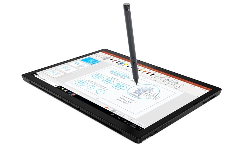 The 12.3-inch display has a Full HD+ resolution with a 3:2 aspect ratio, 400 nits brightness, and Corning Gorilla Glass 5 for extra protection. Joining the display are dual-array microphones, a fingerprint sensor, dTPM 2.0 chip, Kensington lock, and support for Lenovo's Precision Pro and Digital Pen styluses.