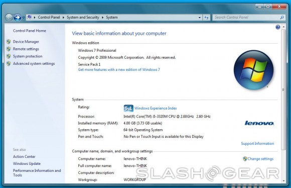 Lenovo keeps its business machines pretty clean when it comes to Windows – well, that's traditionally the case, anyway. There's a few programs here that I'd have installed anyway (Flash player, Google Chrome) and a lot that I wouldn't (Adobe Air, Evernote, SugarSync, Google Toolbar and the obligatory Microsoft Office trial). Lenovo seems to have added quite a few pieces of software that aren't necessary because they're built into Windows – things like a second battery meter.