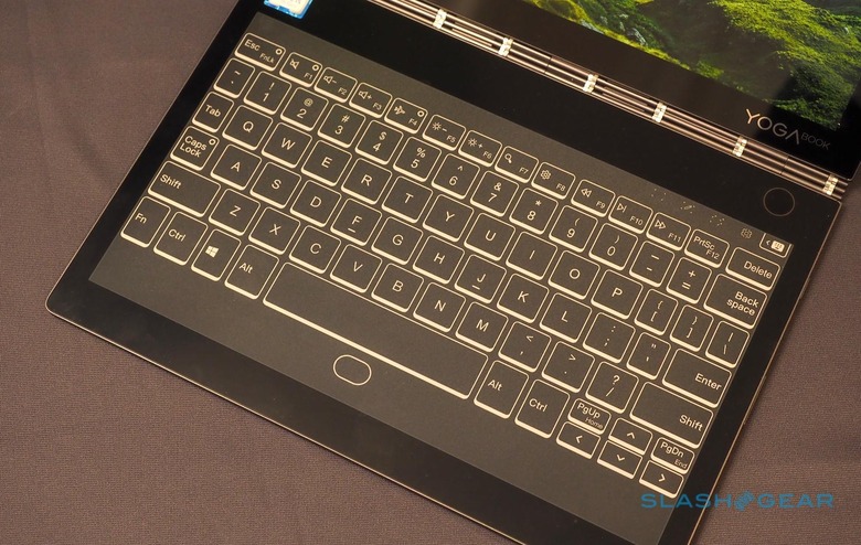 So, normally the trackpad is hidden, maximizing space for the QWERTY layout and spacebar. Tap the virtual trackpad nub, however, and a trackpad enlarges. It means that both the keys and the trackpad can be larger than either on the previous Yoga Book, which couldn't dynamically adjust its keyboard layout.