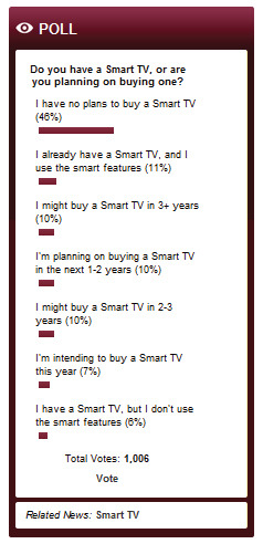 To further gauge interest in streaming, we have a poll running right now asking our readers their opinions on Smart TVs.