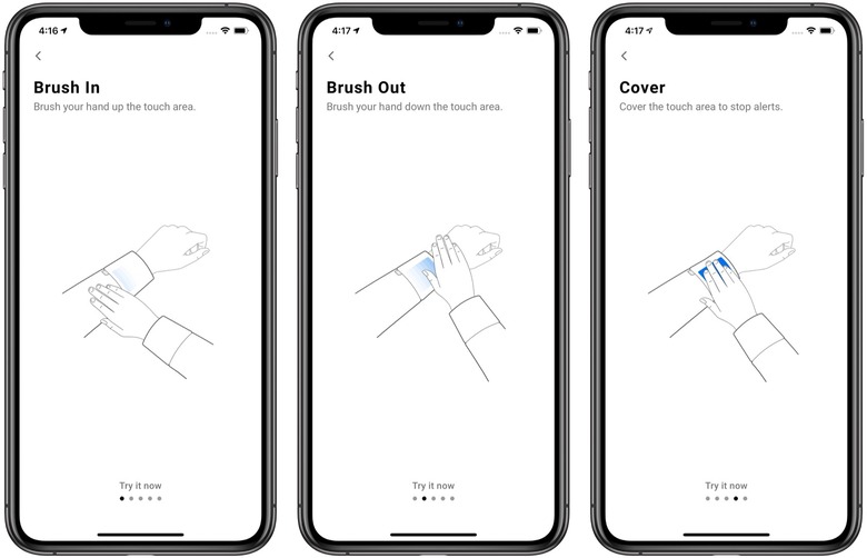 You can, of course, reprogram the gesture as often as you want. Still, the idea is that the digital shortcuts will quickly become associated with good old-fashioned muscle memory. You can assign an action to a brush-in, a brush-out, and a double-tap; covering the Jacquard threads defaults to silencing any active alerts. Three colors for the tag's LED – blue, green, and pink – can be assigned to alerts like calls or texts from a VIP or in general, when you move out of range of your phone, or when your Lyft or Uber is approaching.