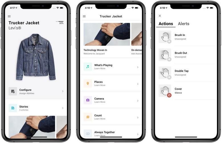 Context plays a role too, and expands how much you can do with the jacket and its limited palette of gestures. If there's an incoming message, for example, you can brush-in to hear it read out. A brush-in while your rideshare is arriving, meanwhile, will read aloud the car's make, model, color, and license plate.