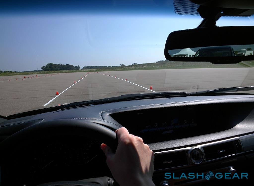 Up until around 25 mph, the GS450h F SPORT can rely solely on electric power, complete with the instantaneous surge of immediate torque that such motors are notorious for. After that, the gas engine kicks in with rumble, recharging the batteries when it has some power to spare, or simply throwing the car in the direction of the nearest corner.