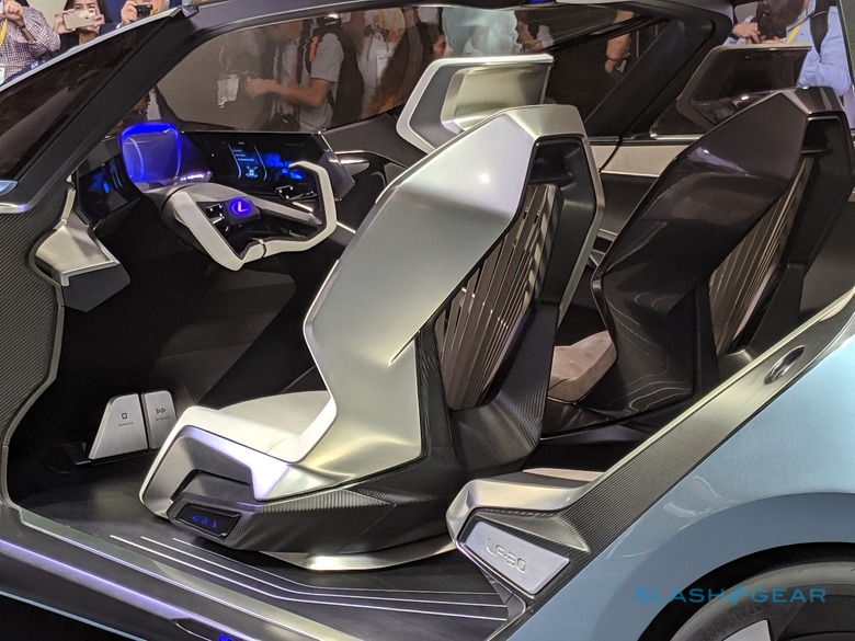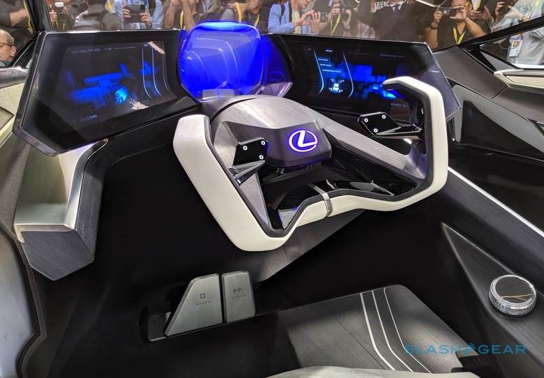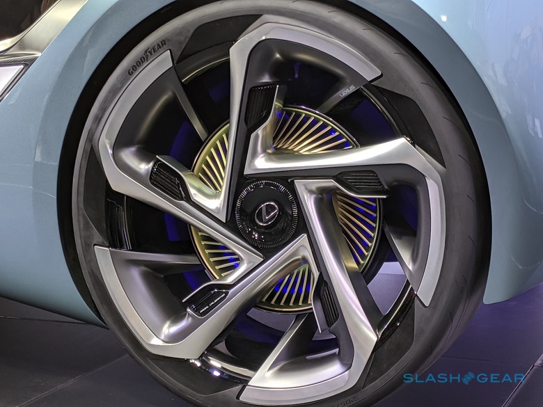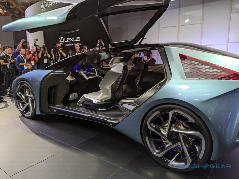 Lexus opted for show-friendly gullwing doors, with electronically-dimming glass. As well as being manually driven, the automaker says it envisages an autonomous mode: in that case, the steering wheel would retract for a cleaner dashboard, and the front fascia and other illumination could be used to communicate the car's self-driving status and intentions to other road users.