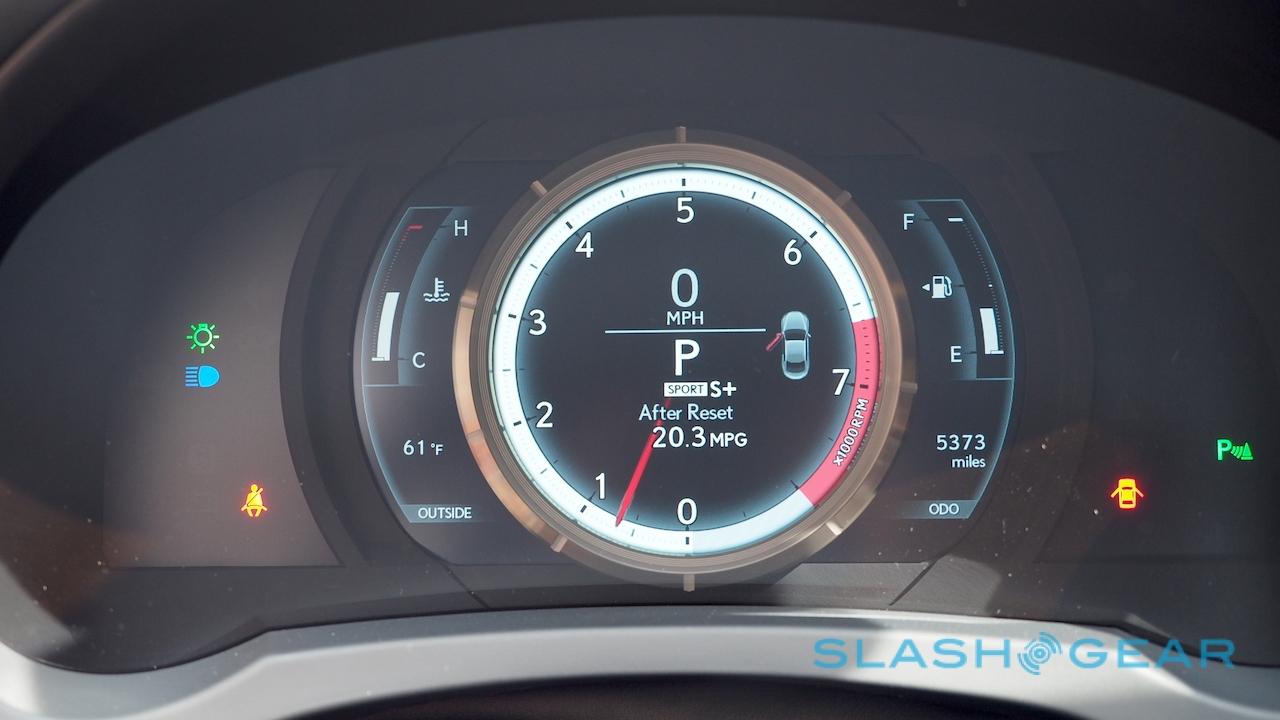 The economy figures fall in line, too. According to the EPA, the Lexus will do 19 mpg in the city and 28 mpg on the highway, for 22 mpg combined. In my own mixed driving I saw closer to 19.5 mpg.