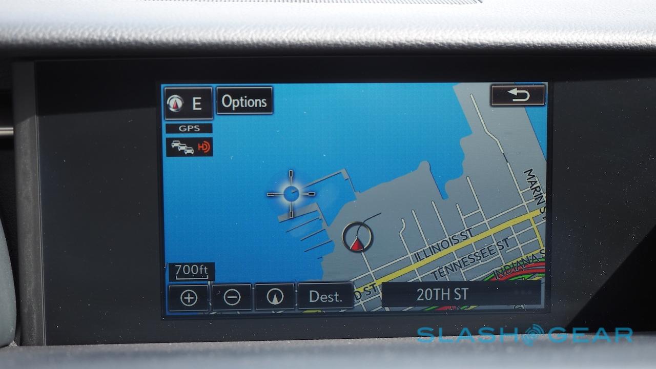 Standard is Lexus Enform Remote and the Premium Display Audio System, offering HD radio, MP3, USB, CD, and SiriusXM. The orange monster had the Navigation System Package added, a $1,530 option including voice-controlled directions which actually did a surprisingly good job of handling my British accent for setting addresses.