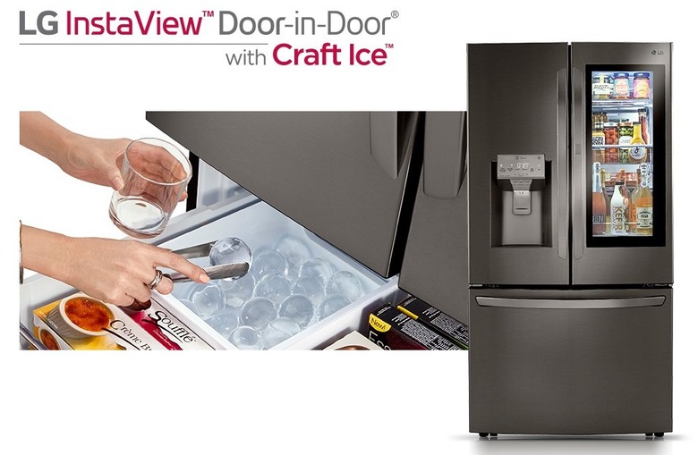 The LG InstaView with Craft Ice adds a cleverer ice maker to the appliance, with LG claiming it's the first refrigerator to produce spherical ice. That's not just an aesthetic consideration, either (though LG's balls do look sleeker than the usual misshapen nuggets freezer ice-makers typically churn out). Spherical ice's 2-inch spheres melt slower than regular ice, the company says, meaning they last longer and don't dilute your drink so rapidly.