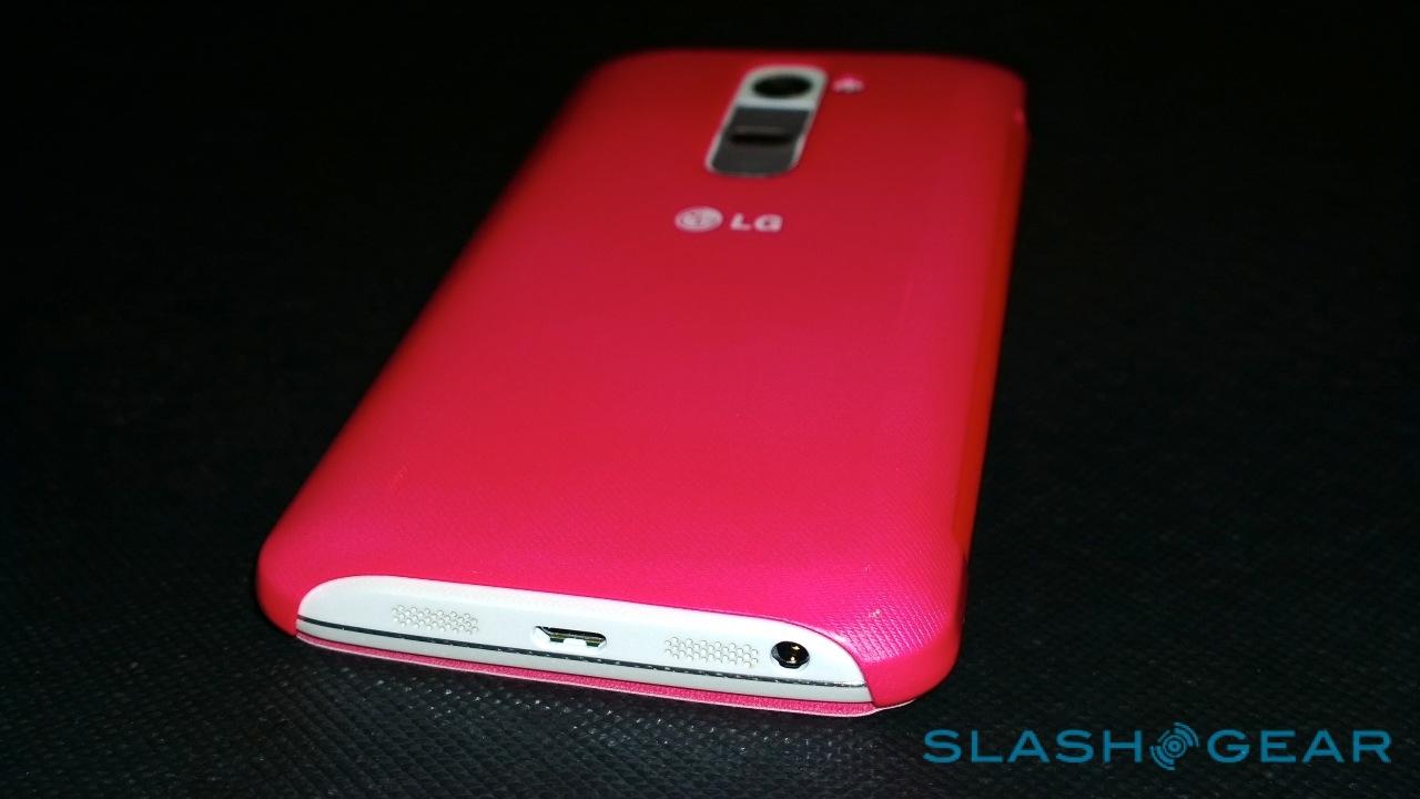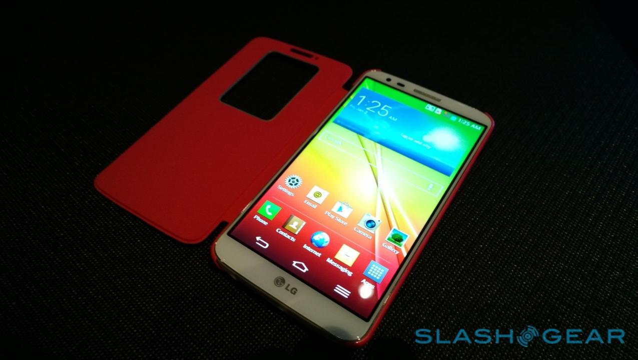 LG has "borrowed" Samsung's windowed case from the Galaxy S 4, for its own LG G2 Quick Window Case, complete with a small opening in the cover-flap. It's a bigger window than Samsung uses – portrait, rather than landscape – and LG describes it as giving a "small phone in a phone": you can see time, date, and weather; interact with calls, messages, and alarms; and control your music playback. One advantage over Samsung's is that, thanks to that big cut-out, you can still use the G2's camera when the cover flap is folded all the way back, rather than having it dangle. LG will offer the Quick Windows Case in seven colors, and users will be able to switch background images as well as pick between analog or digital clocks.