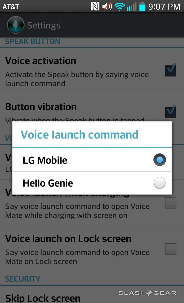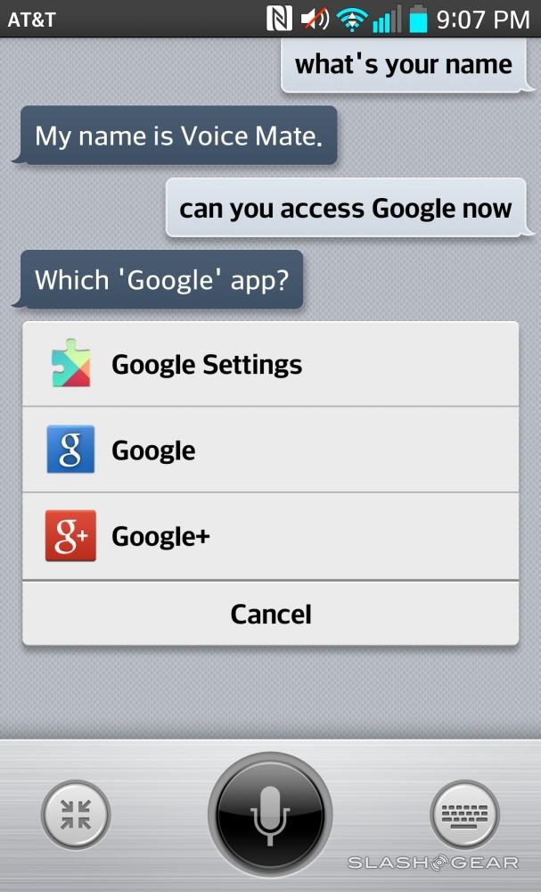 Voice Command works with a collection of abilities quite similar to those embedded within Google Now. The big difference here is that you're working with LG's voice recognition system and you're able to launch this system from your lockscreen, from the app's normal shortcut icon, or when you're charging. If you've just got the phone sitting by your side and the display is on and unlocked (or the phone is asleep), you wont get a response.