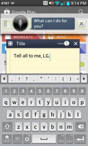 QSlide apps continue their stay in the LG device universe here, including Voice Mate in this case so you can tap for a question or action wherever you may be in the phone. QSlide apps, if you've not seen them before, appear as windows that sit above whatever part of the user interface or app your in, allowing you to feel a bit more like you're working with a desktop computer, as it were.