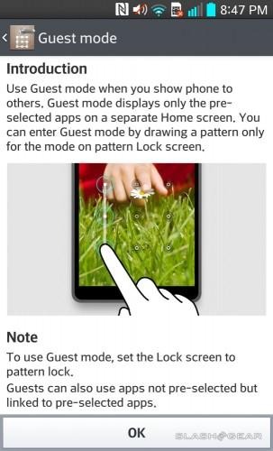 Guest mode works perfectly well – it's simple, and it's activated with the most obvious and clever trigger. Unlock your display with one pattern on a grid and you get normal mode, unlock your display with a different pattern and you've got guest mode. Quite the trick.