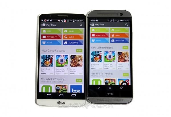 Below you'll see the LG G3 next to the HTC One (M8). The HTC One (M8) is available from several carriers at the time this review is published, while the LG G3 will arrive in the United States later this summer.