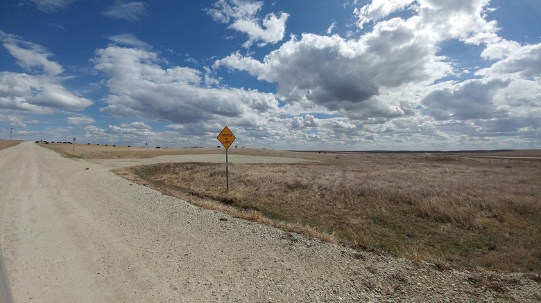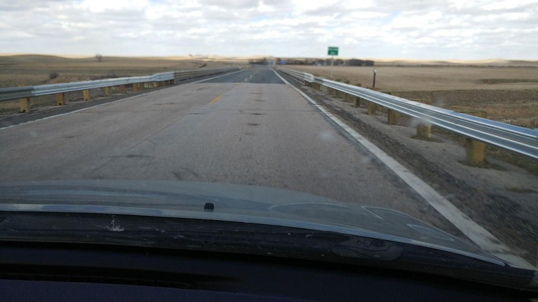 Finally we've got the border between South Dakota and North Dakota. Notice the strange blur going on in the upper bit of the photo – we weren't going over the speed limit. Promise!