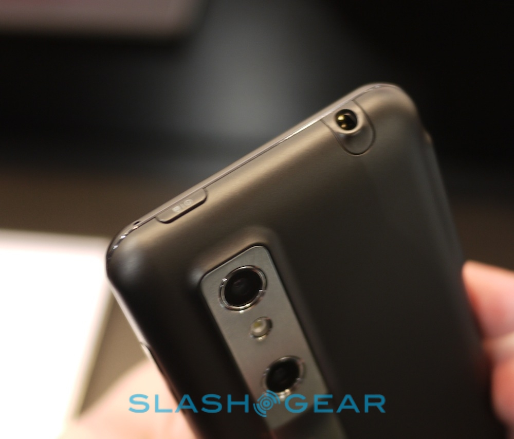 It's the camera which most people will be interested in, a pair of 5-megapixel lenses on the back which can either shoot regular video or 3D footage. Played back on the phone, the parallax barrier display does a solid job of presenting a 3D picture, though unfortunately you can't see it in our video demo. You can also squirt it to a 3D-capable HDTV, either via the HDMI output or wirelessly using DLNA if your set supports it.