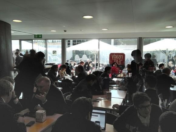 Next you'll see another example of a photo taken indoors of a rather large, open area at Mobile World Congress. The first shot was taken without HDR, the second was taken in HDR mode. This example set shows just a bit more clear the difference between the two – generally this is the case when you've got the possibility of a much more large range of colors and levels of light and dark.