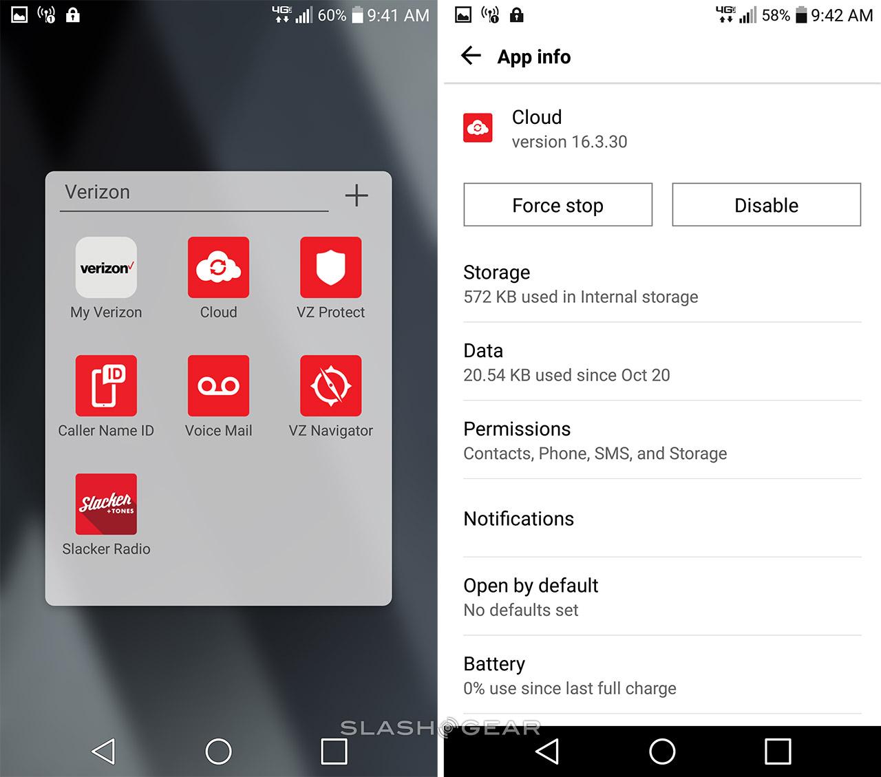 Inside, it's Verizon's show. Unlike the Google Pixel, which requires no Verizon apps be present, the LG V20 includes the lot. That means services like Verizon's cloud storage and messenger apps. It also means that LG's camera app will recommend you use Verizon's apps for sharing and storage.