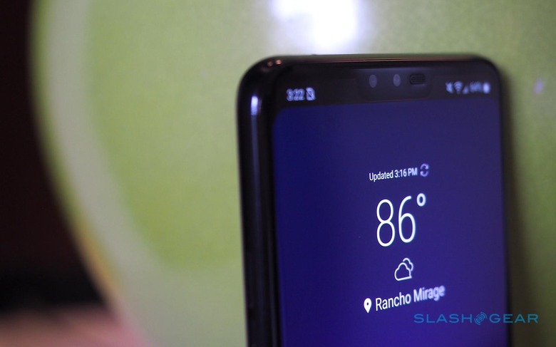 That accounts for three of the LG V40 ThinQ's cameras. The remaining two are found on the front, in the notch cut-out of the 6.4-inch 3120 x 1440 OLED screen. There's a regular, 8-megapixel camera with f/1.9 optics and an 80-degree field of view, paired with a 12-megapixel camera that has f/2.2 optics and a 90-degree field of view.