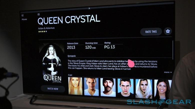 You'll be working with a home screen with the name "present" atop it, with apps like Netflix, YouTube, and Hulu Plus ready for the tapping. Users are able to select their content using the LG Motion remote, selecting these bits with the easy to aim for panels along the bottom of the screen. Above you'll also find Settings with a much larger set of targets – you'll not be needing to hit that up as often, as it were.