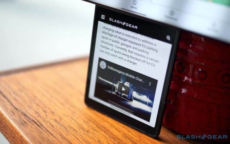 The bigger problem is that most of my go-to apps just aren't as useful in landscape orientation. Mobile-formatted webpages are laid out to take advantage of screens longer than they're wide; you can force Chrome to open the desktop version, but then the 9:20.5 aspect primary display makes it feel like you're browsing through a letterbox. Google Maps looks a little better, but the interface is still designed with portrait screens in mind.