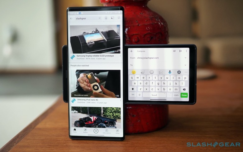 As we saw on LG's Dual Screen phones, you can pin two apps together and have them both open with a single tap. Or, you can open two apps individually, including having two browser windows visible, one on each screen. You could have the bottom panel for your music controls, or for a chat window, while you review a document or watch Netflix on the upper screen.