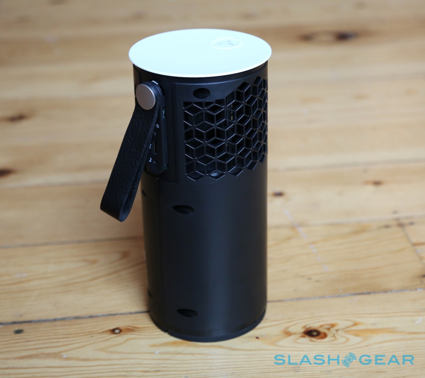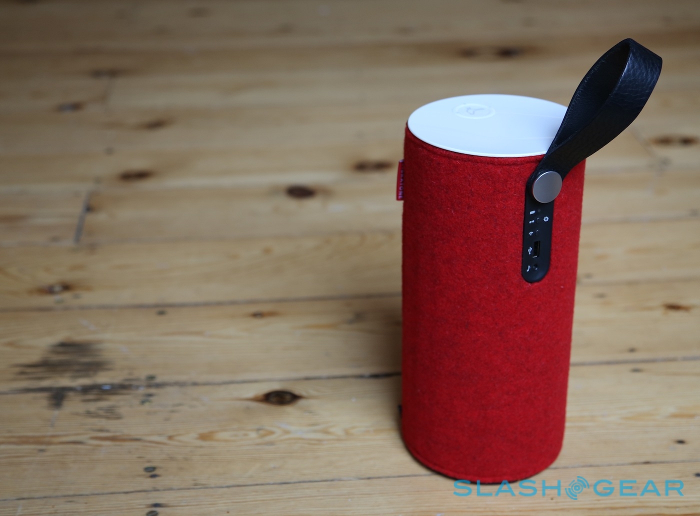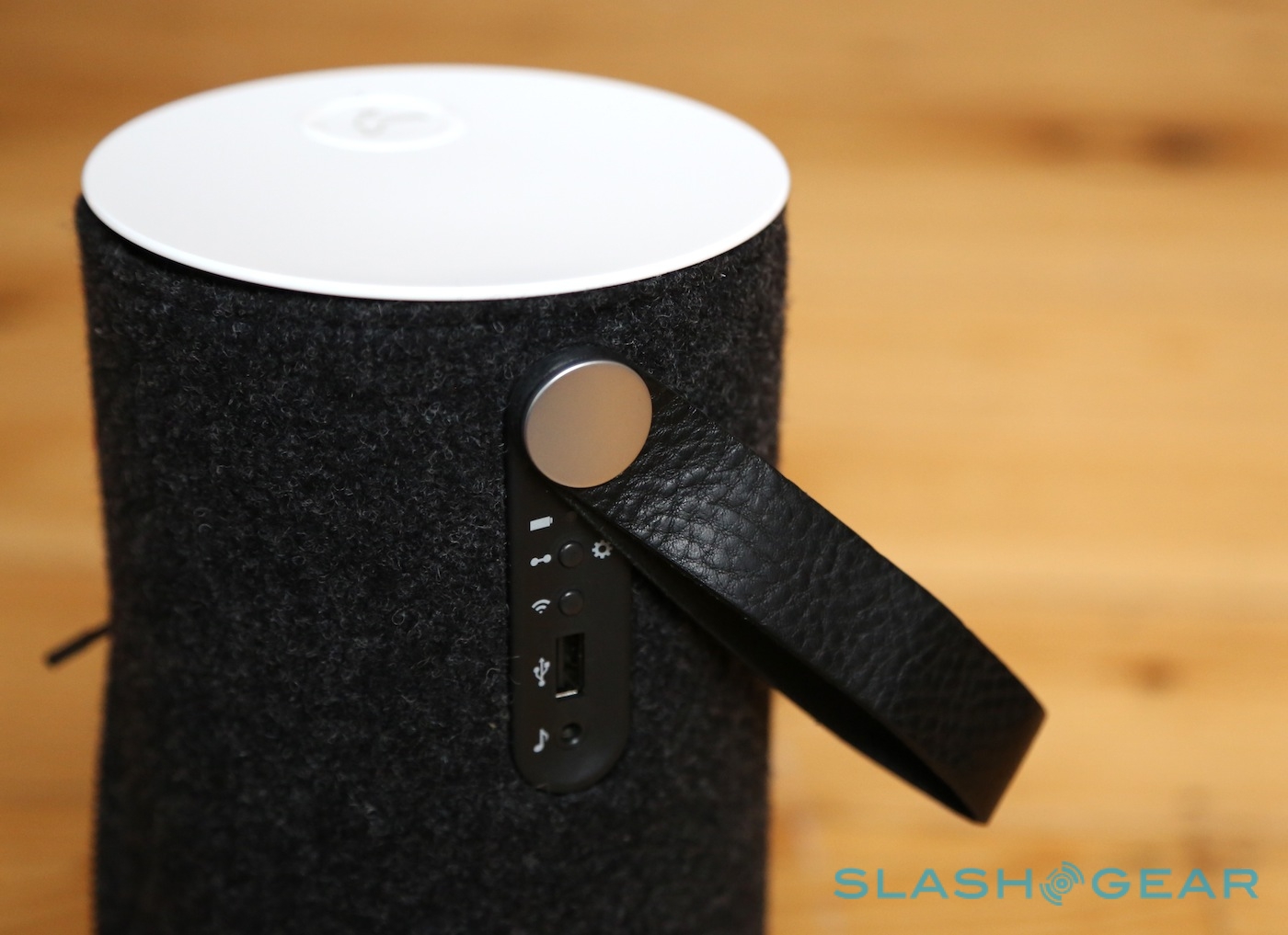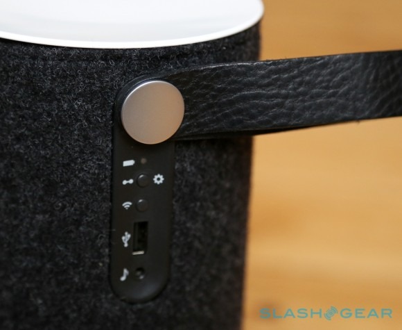 It's not the smallest portable speaker, but it's also not the most difficult to transport; certainly it's easy to tote around the house, while we could see it getting packed into a rucksack with your next picnic too. The leather carry handle is a neat touch, and feels sturdy enough to swing the Zipp from; it also masks the majority of the ports and buttons on offer. While the power button and volume keys are on the top of the speaker, under the strap there's a USB port, aux-in input, LEDs for battery and wireless status, a WiFi button, and a PlayDirect/Setup button.