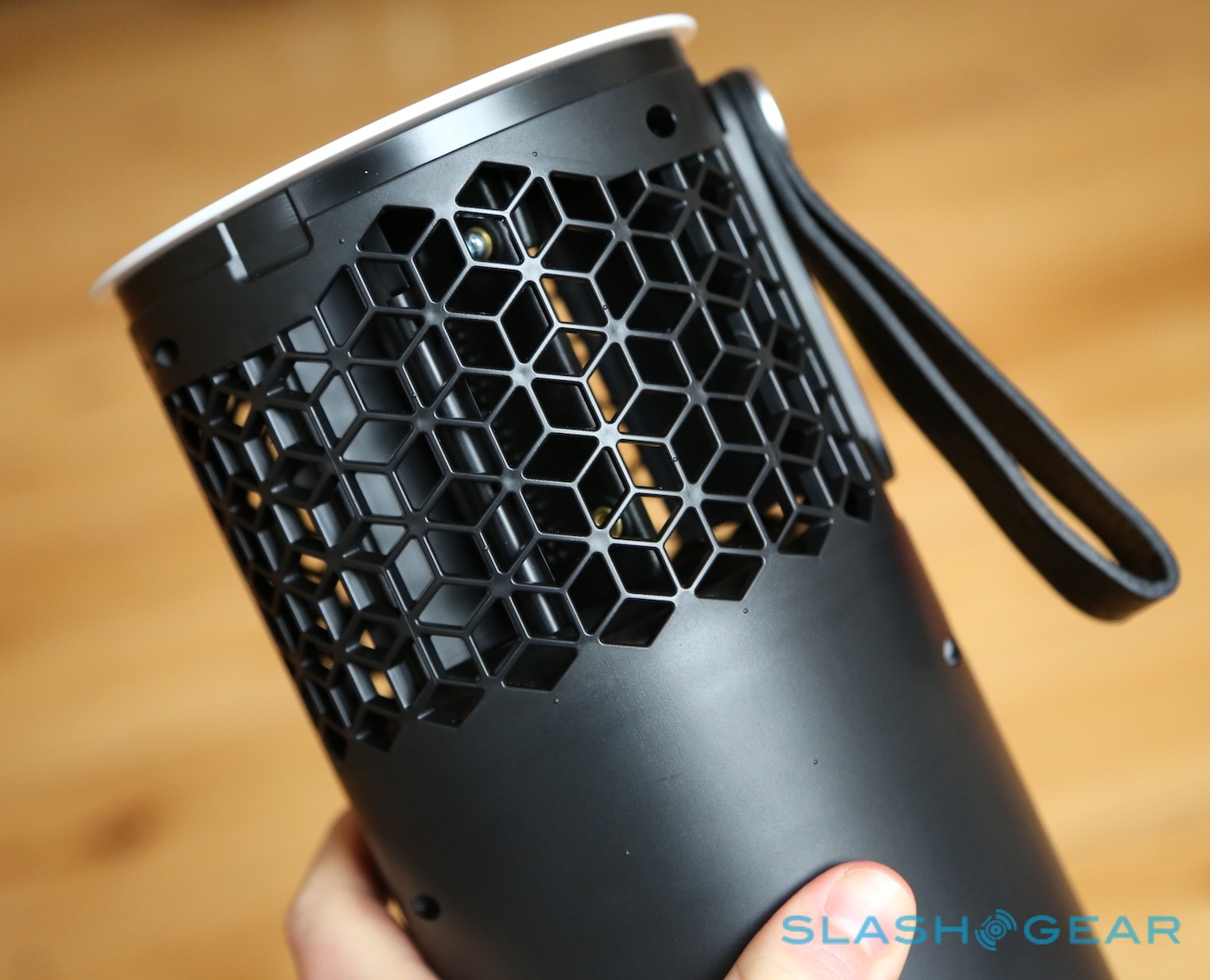 Libratone has been pushing its brand of quirky fabric-clad simplicity for a few years now, and the Zipp follows in the footsteps of the Beat we reviewed last year with more wool wrapping. A 10.2-inch tall, 4.8-inch diameter cylinder, the 4 pound Zipp has a whimsical leather handle and can be dressed up in one of eight different colors of outer sleeve.