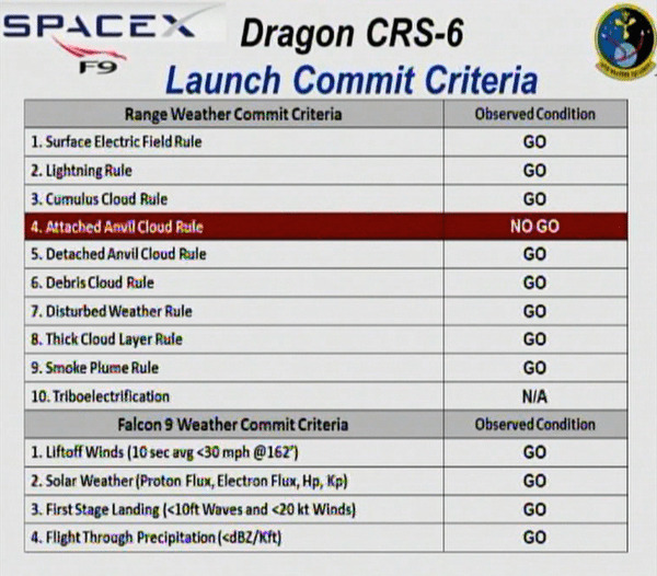Just so long as all of the following commit criteria are met. See that anvil cloud? Again, that's what scrubbed the launch yesterday. Watch out for anvils!