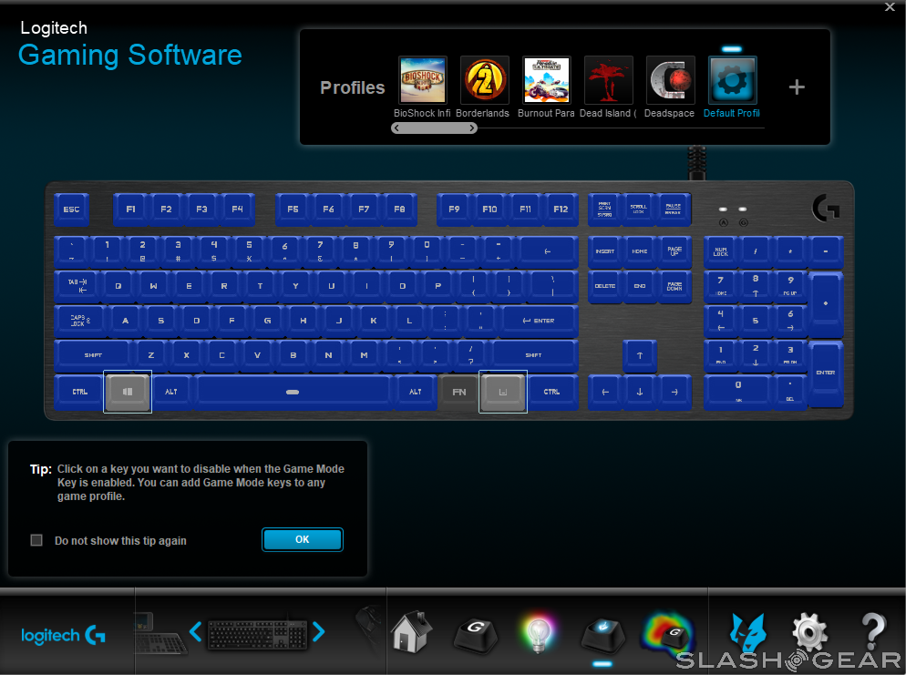 One of the handiest features of Logitech Gaming Software is the amount of options you have when it comes to game mode. Most gaming keyboards support some kind of game mode – which at a minimum should disable the Windows key while you're playing a game – but with LGS, you can edit game mode to support other keys you have no use for while gaming. This ensures that only the keys you intend to press while playing are active, which is very nice to have if you tend to play certain high-intensity video games.