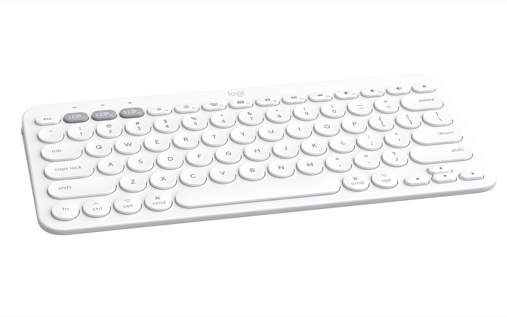 So, there are dedicated Control, Option, and Command buttons, together with a Fn key, and a row of Apple-specific shortcuts for the function row. F1, F2, and F3 act as device switch shortcuts, so that the K380 for Mac can link with up to three different devices.