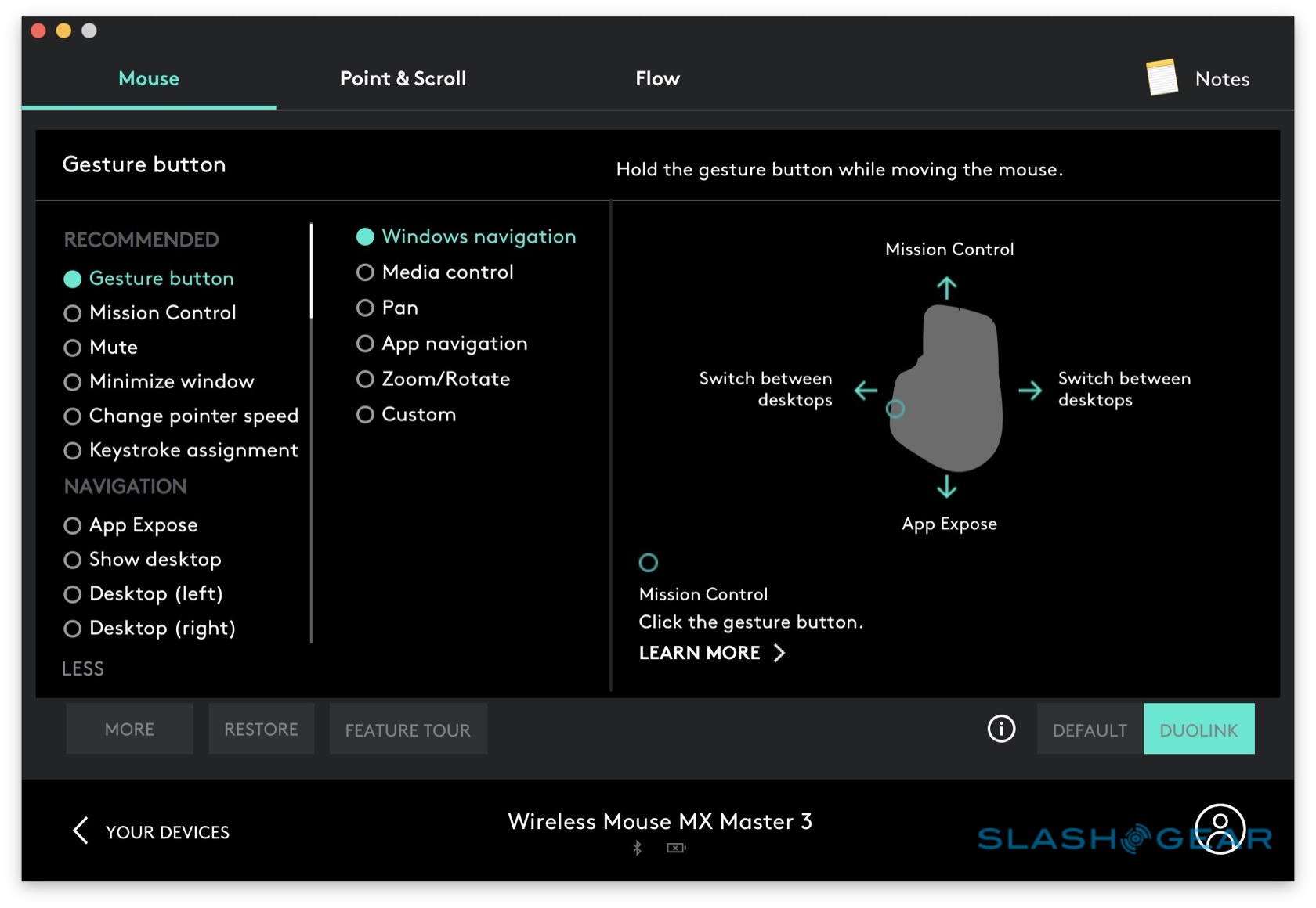 Normally I'm a trackpad person, but one of the reasons I stuck with Logitech's mouse is the customization. Using the Logitech Options app – which can manage both the mouse and the MX Keys keyboard – it's possible to set different actions for the various buttons and gestures. That's carried over from the old mouse, but new are customization presets for some of the most popular apps.