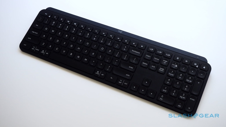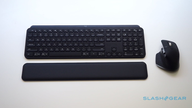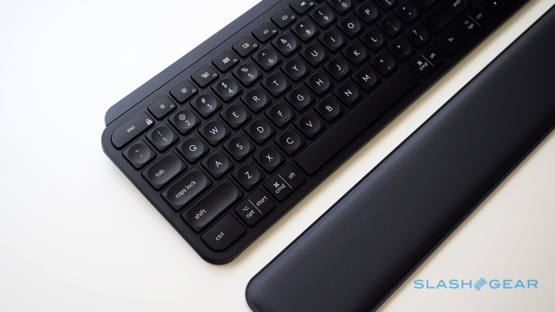 It's built on a single metal plate, meaning it doesn't shift around the desk even if you're heavy with your finger-stabs like I am. Neither does it twist or feel like it could crack. That's great if you're desk-bound, but not so much if you were hoping to take the MX Keys with you in your bag, since it's definitely weighty. There's a separate MX Palm Rest, a slim piece of memory foam for your wrist, sold optionally at $19.99.