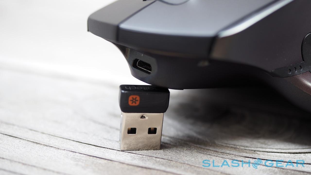On my wooden desk, I'd prefer a little less friction from the pads underneath; I wish there was a place to store the Unifying Receiver, too, somewhere in the body of the mouse. I can't complain about the overall feel of the buttons, however. Logitech tells me each was run through 10m clicks before the engineers signed off on them, and while they don't take much pressure to trigger, nor do they feel flimsy.
