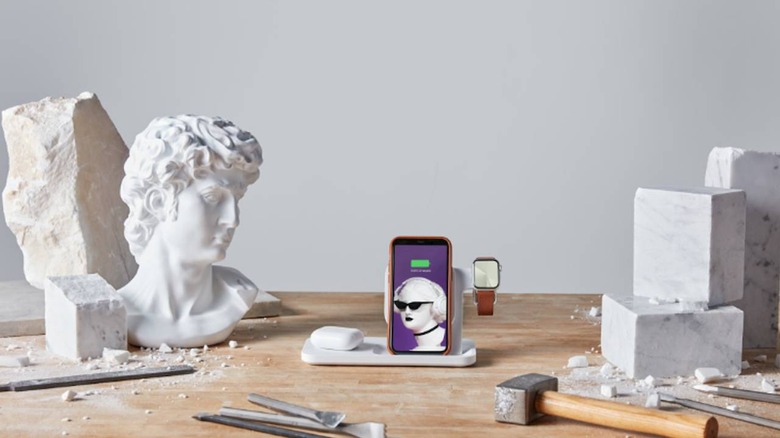 Less of a charging pad and more of a charging station, the 3-in-1 Dock nevertheless has the space and capability to charge an iPhone, AirPods, and an Apple Watch at the same time. While the AirPods lay flat on the pad, the phone is charged in an upright position, with a dedicated charging pad for the watch situated next to the phone.