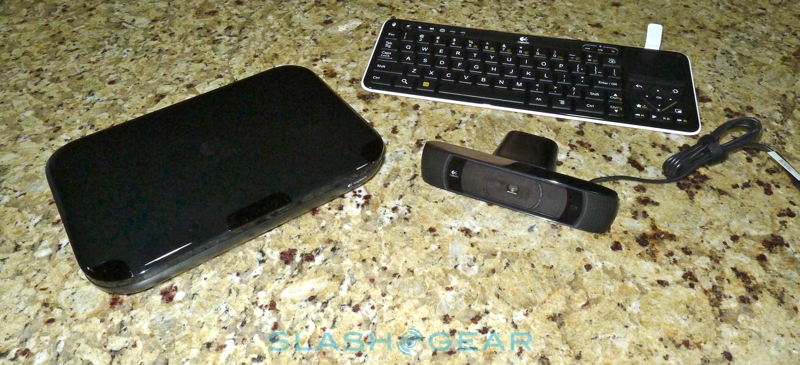 Google TV supports video calls, though Logitech's package doesn't come with all the necessary hardware as standard. Instead, you'll need the TV Cam webcam, an expensive $149 addition that plugs into one of the USB 2.0 ports on the back of the Revue (we'd like to have seen a front-panel port as well). Regular USB webcams won't work, unfortunately, since the TV Cam has its own 720p hardware encoding kit inside, though video calls can be held with anyone using Logitech's free Vid HD software, available for PC and Mac.