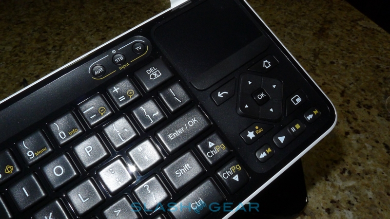 Also in the box is Logitech's standard Google TV controller, a wireless keyboard with integrated trackpad and multimedia buttons. It's a sturdy, reasonably tactile device, but it's certainly not discrete, and if you find regular button-encrusted remotes off-putting then the Revue's 'board will likely smack a little too much of the home office. As you'd expect from a peripheral manufacturer, the keys are solid for typing and we had no problems with connectivity, though we'd prefer it if there had been key backlighting for easier nighttime use. Logitech offer a separate mini keyboard, priced at a hefty $130, which is better scaled to the living room, but we can't help but look at the Boxee Box remote – with its simple controls on one face and a scaled down QWERTY thumbboard on the reverse – and wish Logitech had done something similar.