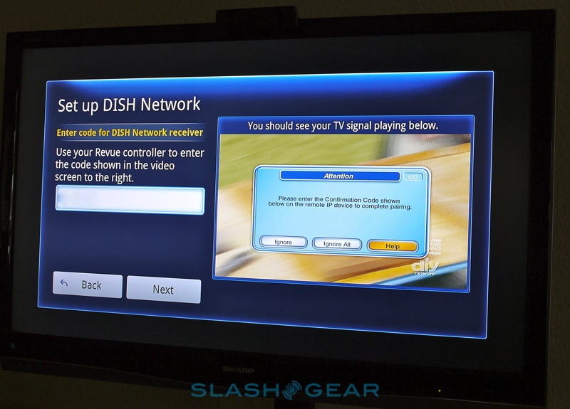 DISH DVRs aside, Google TV attempts to be as flexible as possible in what STB kit it works with. The flip side of that flexibility is a nebulous, lengthy setup process that is likely to instantly sour the experience of any less-than-confident users. Various stages for setting up the WiFi or network connection (though not accommodating fixed IPs, unfortunately) together with picking your STB from a list, choosing which channels you do and don't get, a four-stage process of adjusting screen scaling to suit your display, and generally tweaking the Google TV experience – all punctuated with several restarts along the way – means the Revue really is not plug-and-play.