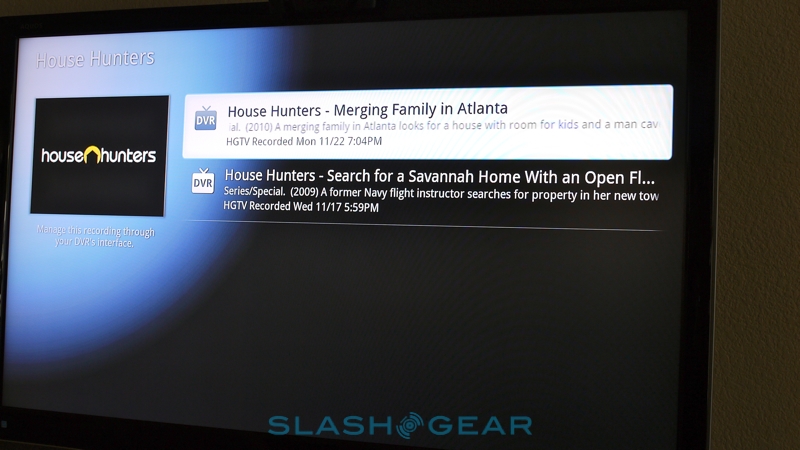 In fact, the experience as a whole feels more suited to immediate viewing than planning ahead. Unless you have one of the compatible DVR boxes, there's no easy way to schedule recordings from the Google TV UI: instead you get a pop-up box telling you to flip over to your DVR and set up the recording from there. If you've a DISH box, the Revue can schedule recordings itself.