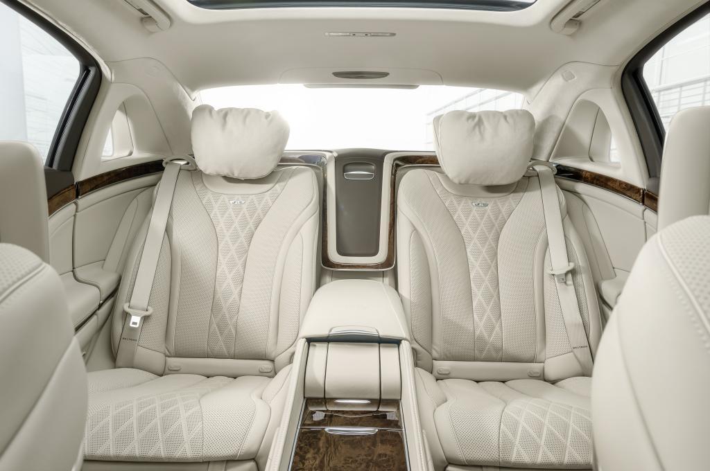 Hand-stitched leather, an analog clock contributed by watchmaker IWC, wood and chrome elements to the cabin, and fiber-optic lighting are all used to make sure the interior is a little more special than you'd find in a regular S-Class.