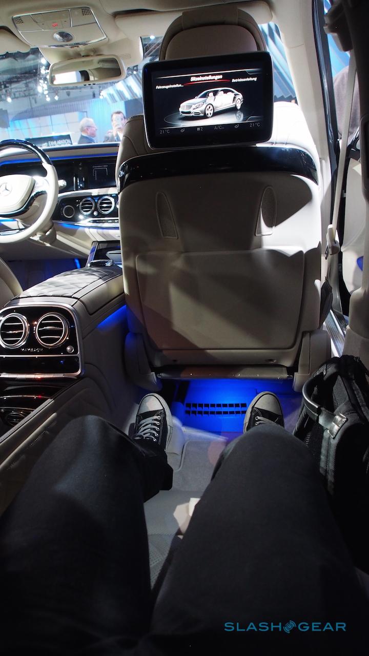 Tech isn't in short supply. There's HD Voice Bluetooth for calls on compatible networks, and an intercom system to allow rear passengers and their chauffeur to communicate without shouting. A Burmester 3D surround sound system packs 1540 W and 24 speakers, each with its own amplifier: the tweeters are even motorized, swiveling out from the rear doors to better face the occupants.