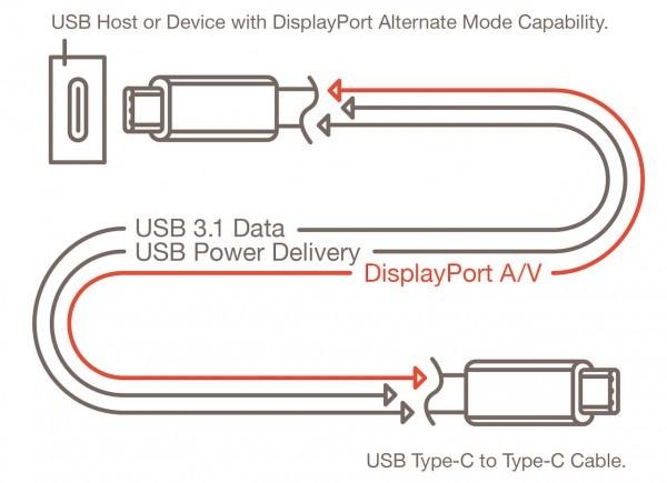 VESA's new connection borrows some or all of the four SuperSpeed USB lanes, taking advantage of the USB Type-C connector to double for DisplayPort's own AUX channel and HPD (Hot Plug Detection) features.